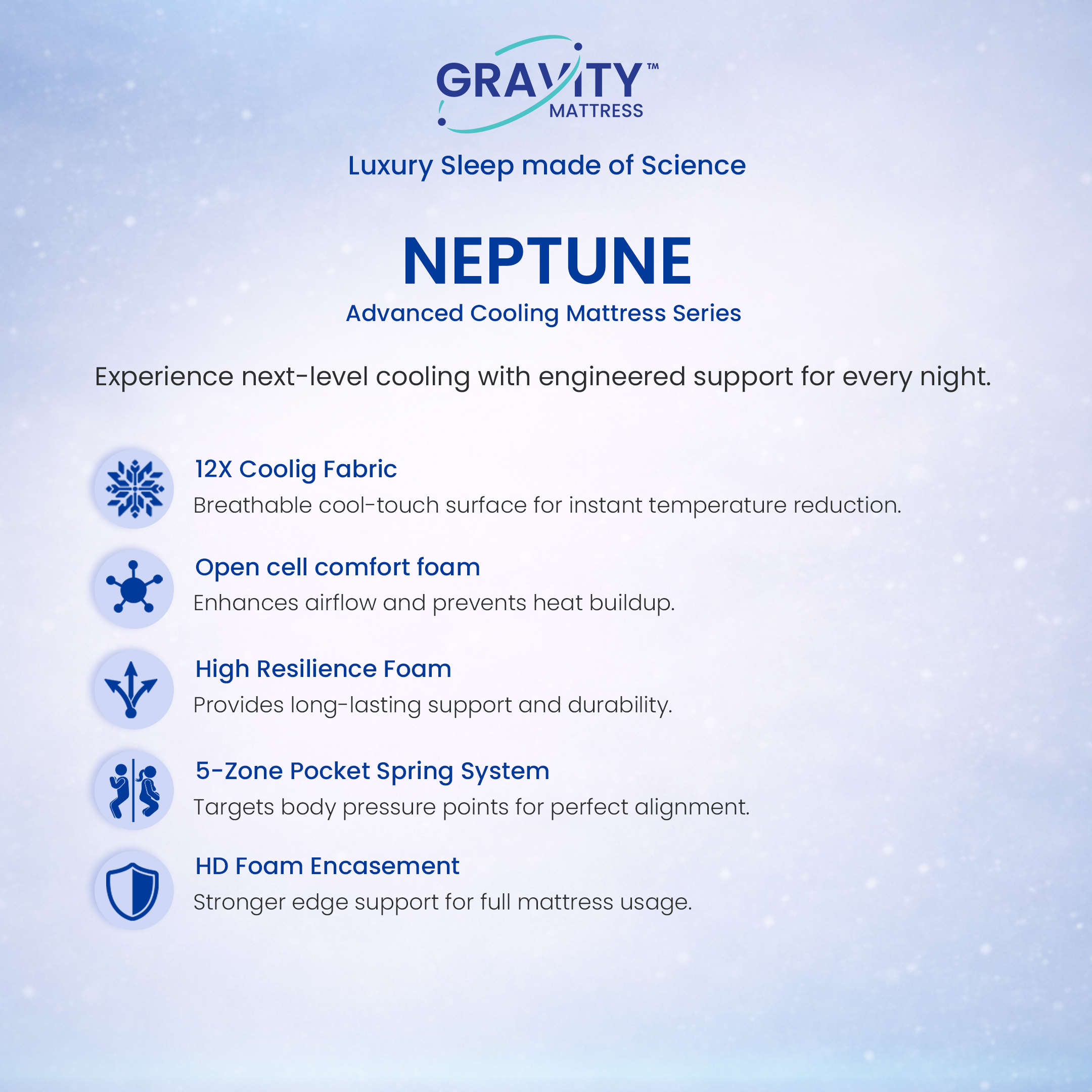 Designed for comfort, built for durability — the Neptune Mattress combines advanced cooling technology with strong body support for a perfect night’s rest.